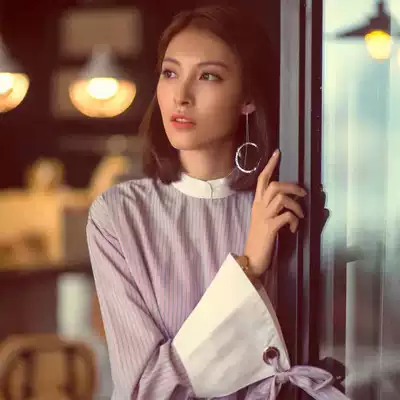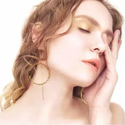 Screw shop official authorized shop 925 sterling silver long version big circle letter ear refining earrings female niche design