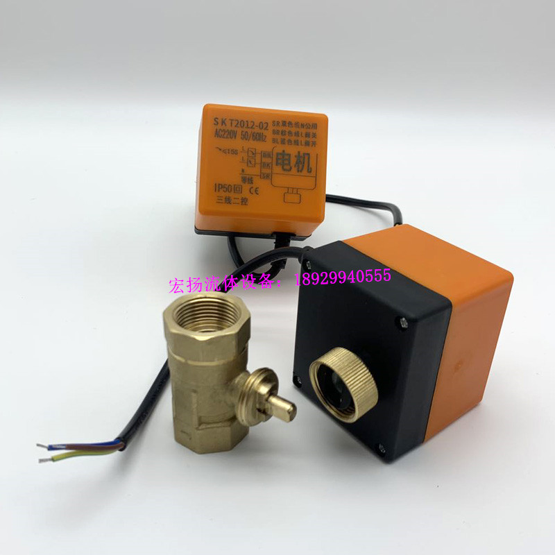 Electric ball valve 220V electric two-pass valve third-line second-control electric ball valve central air heating special ball valve DN15