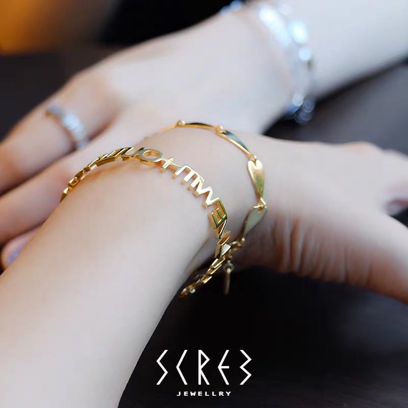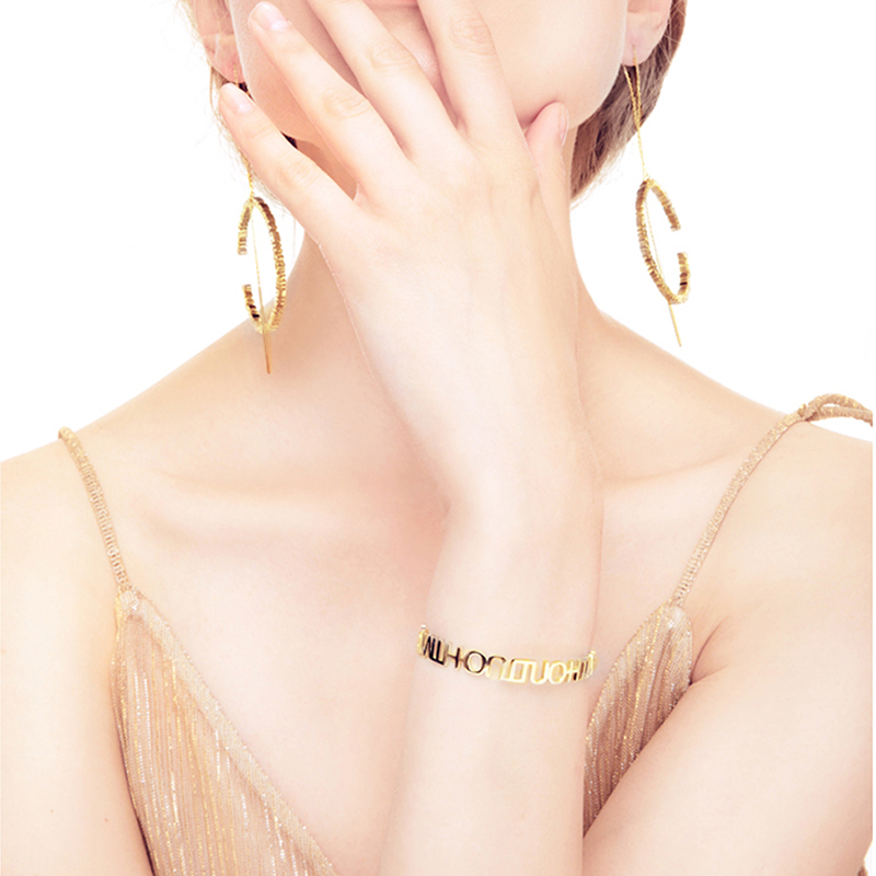 Screw 4 things net red letter bracelet open female hand sterling silver simple personality plated 18k yellow gold cold wind birthday
