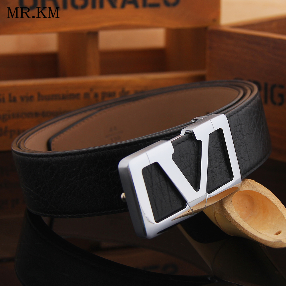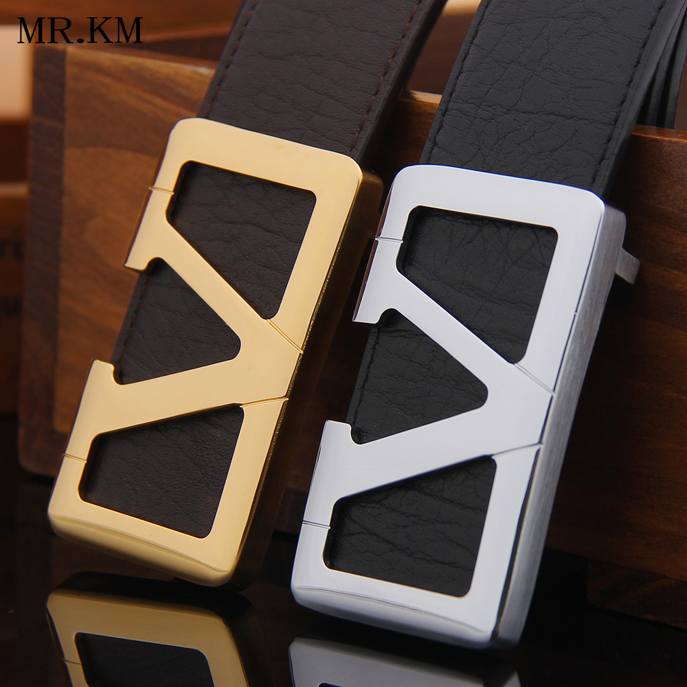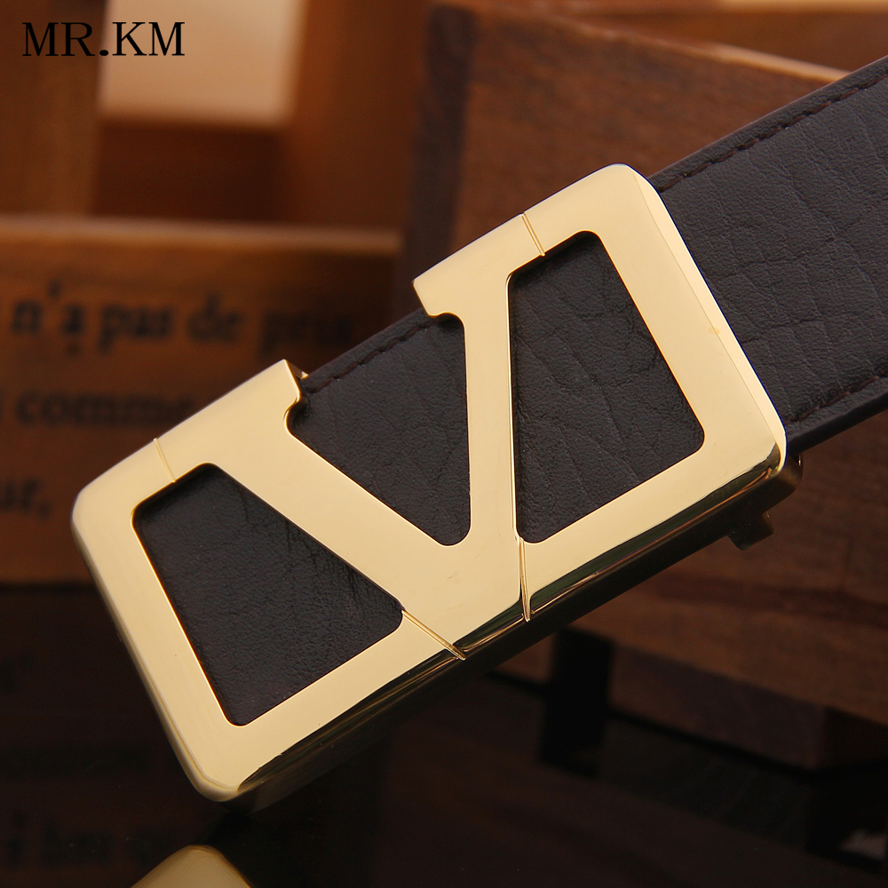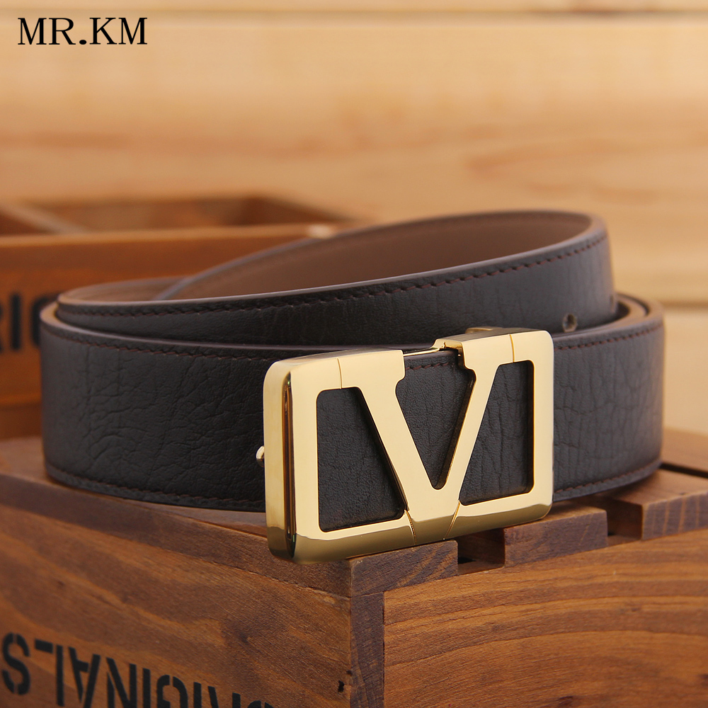 MR KM belt men's V-shaped copper head leather with scrub bottom smooth buckle belt trendy fashion