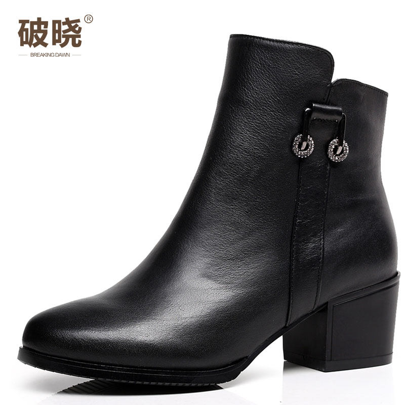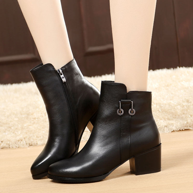 Autumn and winter women's shoes thick heel short boots women's spring and autumn single boots ankle boots genuine leather medium heel cowhide boots women's cotton shoes large size women's boots