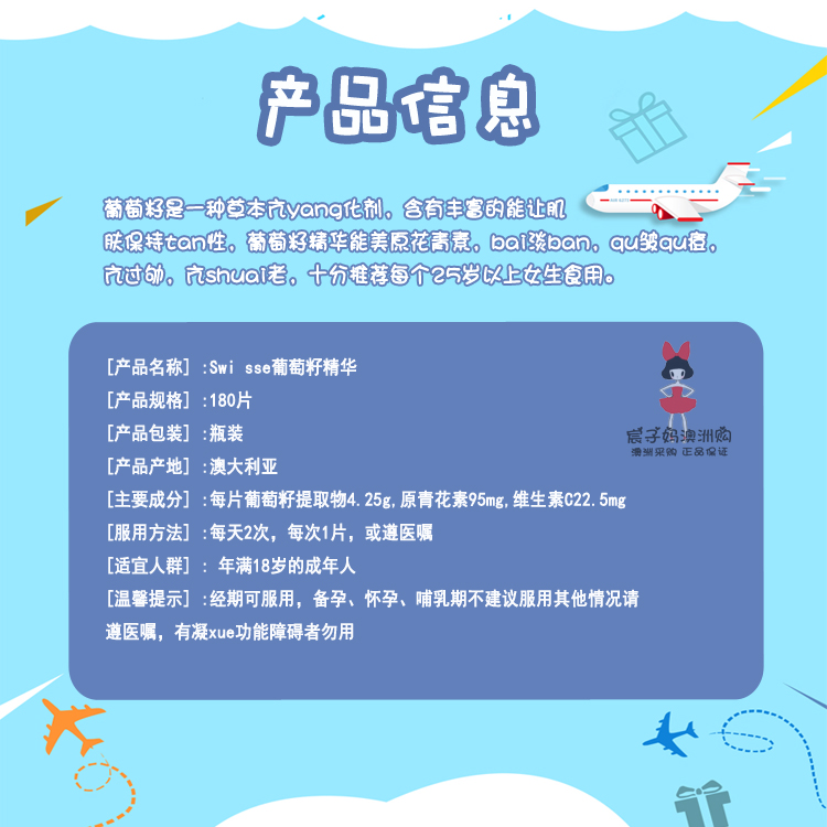 Australian Swisse grape seed essence extract 180 grain with Vitamin C raw anthocyanin opc paired with collagen