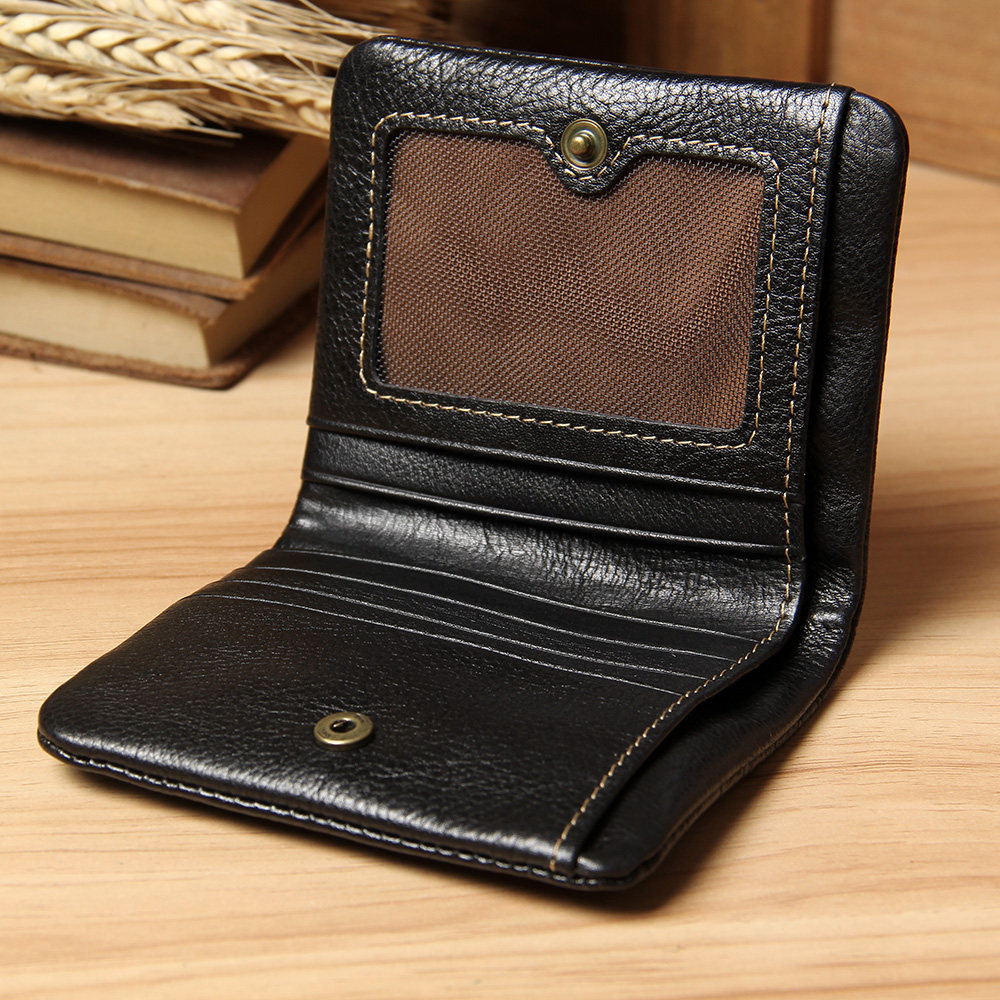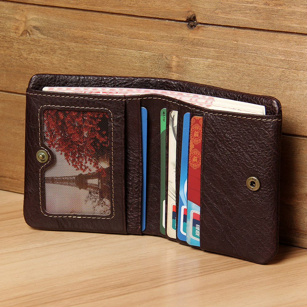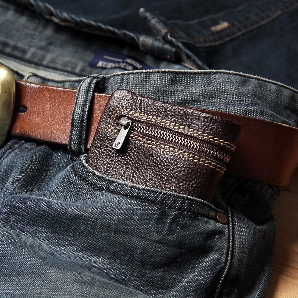 Handmade Small Wallet Men's Mini Leather Ultra-thin Wallet Leather Men's Wallet Women's Short Vertical Zipper Wallet