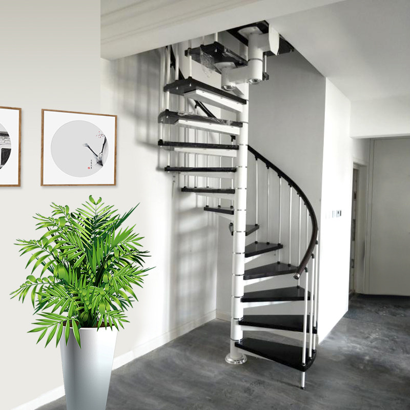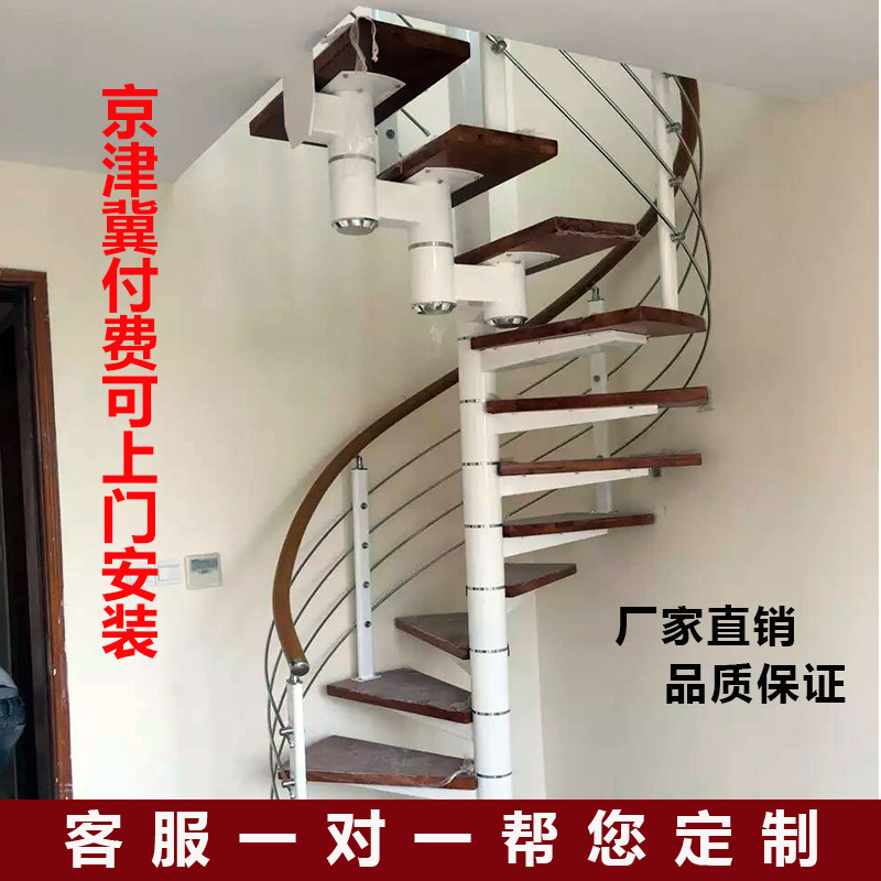 Overall household rotating stair loft complex building indoor center column board custom steel wood handrail solid wood iron rotary ladder