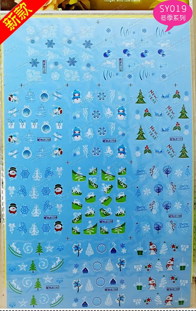 Manicure stickers watermark stickers large A4 ultra-thin watermark decals Christmas snowflakes Santa Claus elk