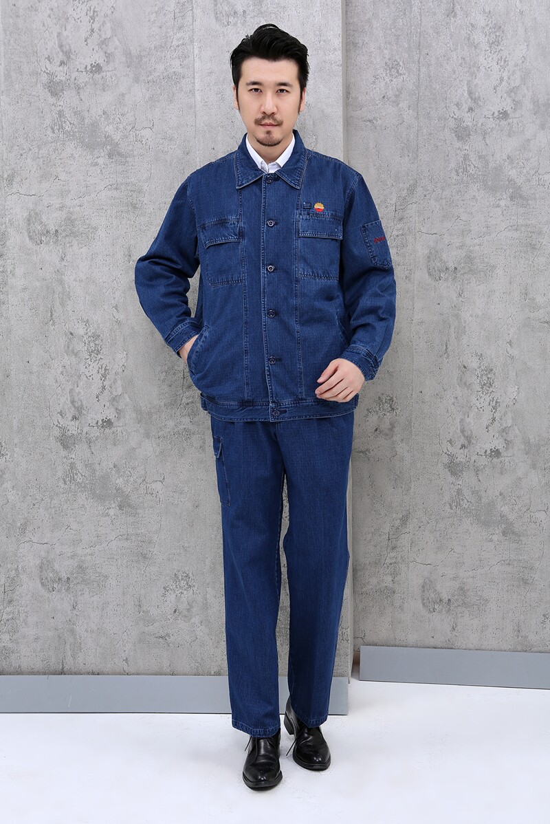 Medium Oil Work Clothes Jeans Fall Thickened Petrol Station Pure Cotton Antistatic Suit Pure Cotton Electro-welded bronzed