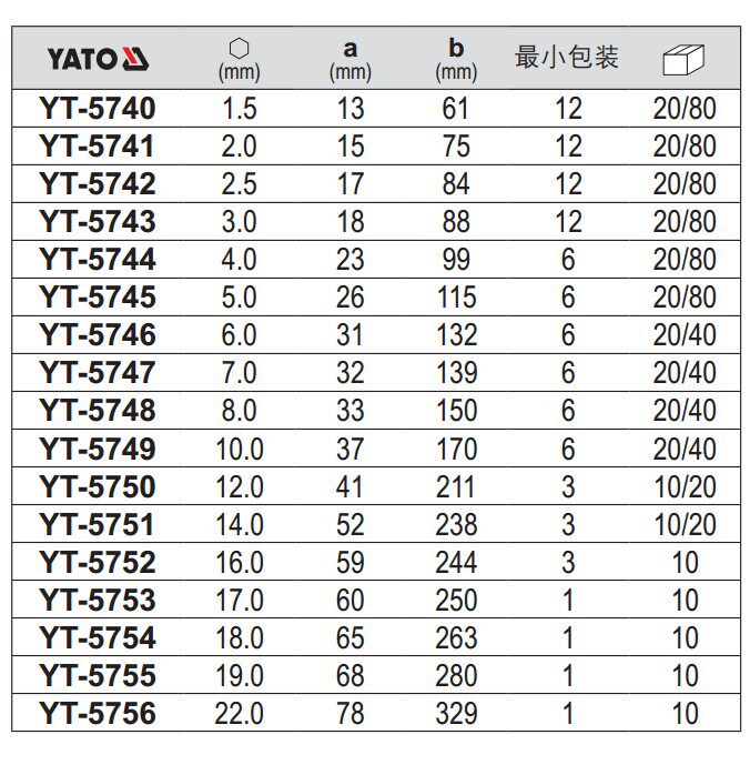 YT-5740 YT-5740 1 5mmYT-5741 2 0mmYT-5742 2 5mmYT-5743 3 0mmYT-5744