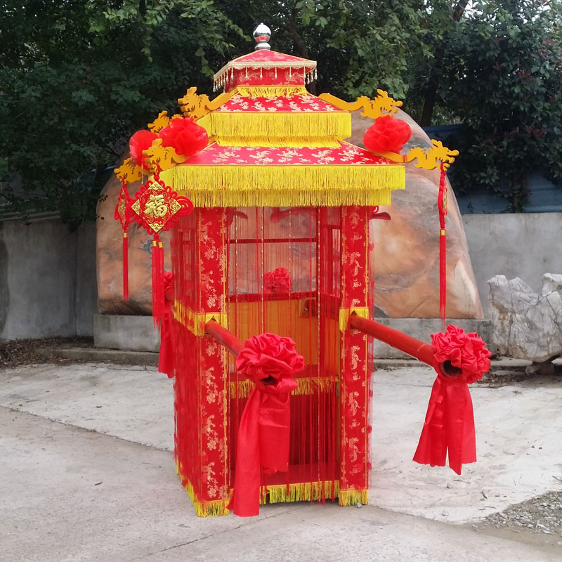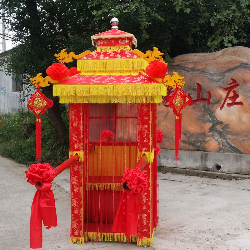 Sedan folding transparent sedan chair Sedan chair eight-person lift Vintage wedding sedan chair Dragon and Phoenix figure wedding Chinese bridal wedding sedan chair New product