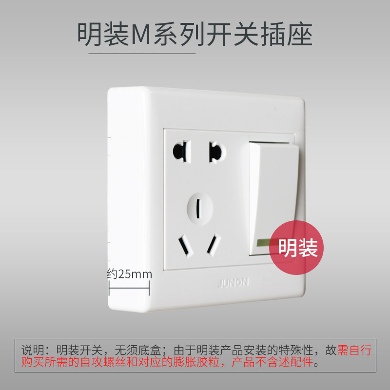 Junlang Ming-mounted M series one-open double-cut switch two-three-plug 86-type panel open line one-open single-control five-hole socket