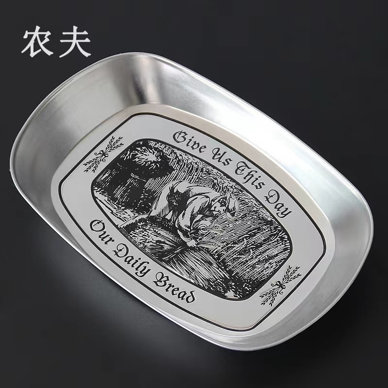 Metal Tray Stainless Steel Horse Mouth Awakening Tray Hand Rolled Fruit Tea Storage Tray Reaper Pattern - Taobao