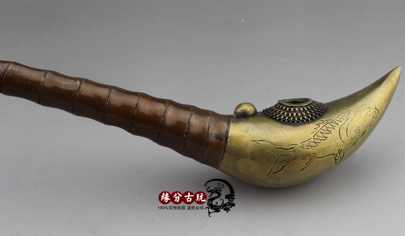 Antique Miscellaneous Collection Brass Old Smoking Gun Smoking Pipe Smoking Set Antique Handicraft Bamboo Smoking Pipe Made in Guangxu Year