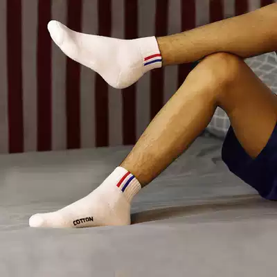 Autumn and winter men's mid-tube socks trendy sports breathable deodorant towel bottom thick warm socks high tube Korean white socks