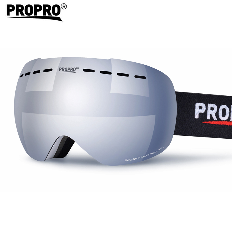 propro ski glasses large spherical unframed goggles cocked close to glasses men and women double layer anti-fog ski mirror