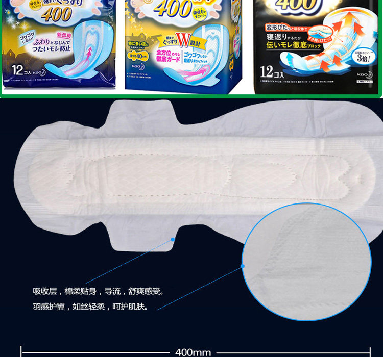 Ultra-absorbing night with protective wing sanitary cotton 400mm * 12