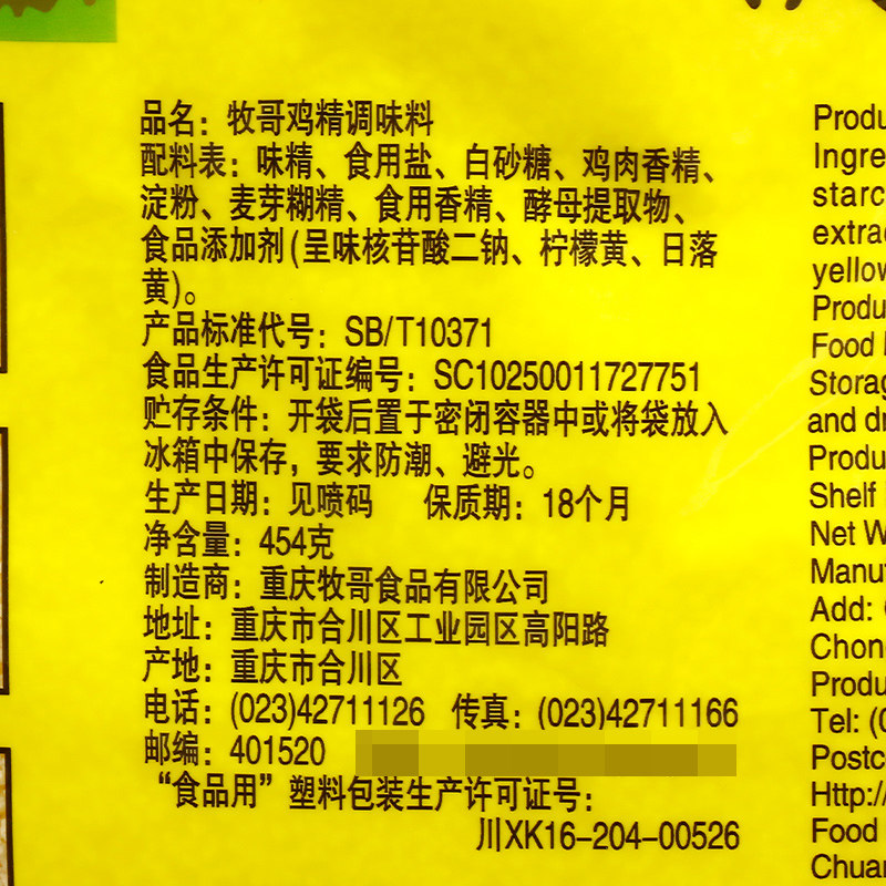 Sodium glutamate fine Taste Nucleotide Disodium Lemon Yellow Turmeric, etc., based on the actual information of the product's outer packaging