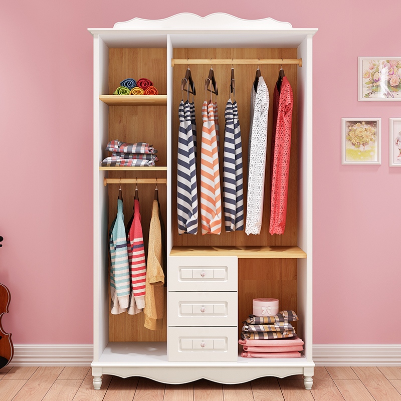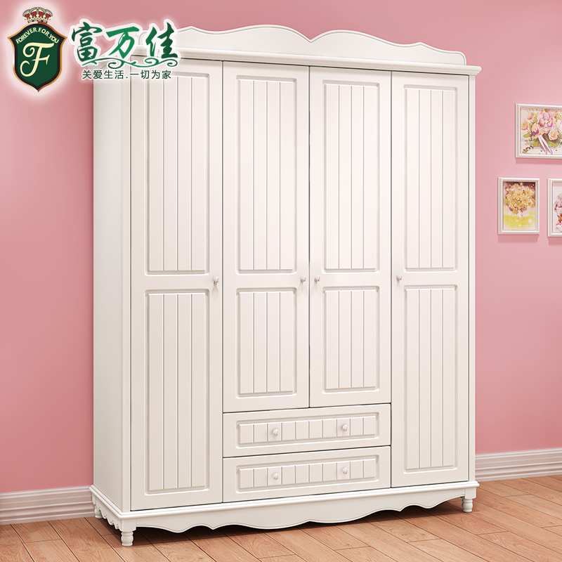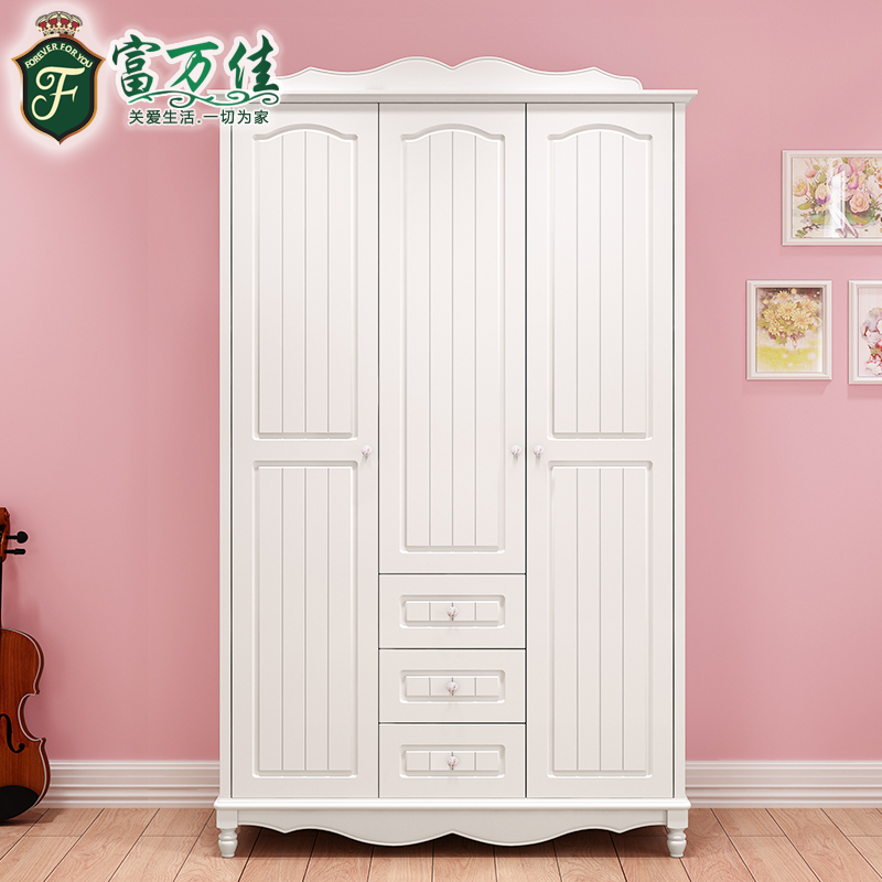 Rich Wanjia furniture Korean style wardrobe bedroom combined three-door plate small closet four doors European-style solid wood children wardrobe