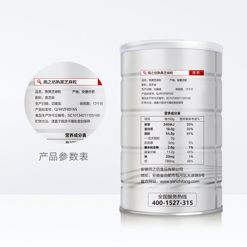 Yanzhifang five grains cooked black sesame grains 500g instant disposable no-wash dry eat black and white sesame companion baked coarse grains