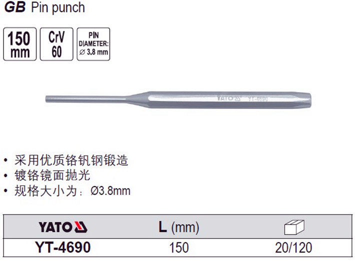 Yiertuo original auto repair tool pin punch explosion-proof spiral punch gun cylindrical pin punch YT-4690