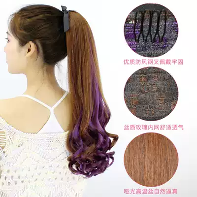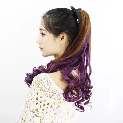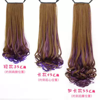 Wig long curly hair Big wave ponytail strap type round face realistic highlighting pear flower gradient medium and short braids girls