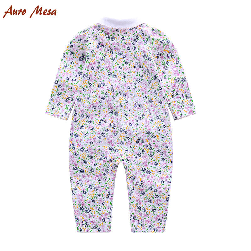 AuroMesa baby lingerie Even sweaters spring and autumn female baby long sleeves crawl to the field Garden Broken Flowers Khaki Outsuit