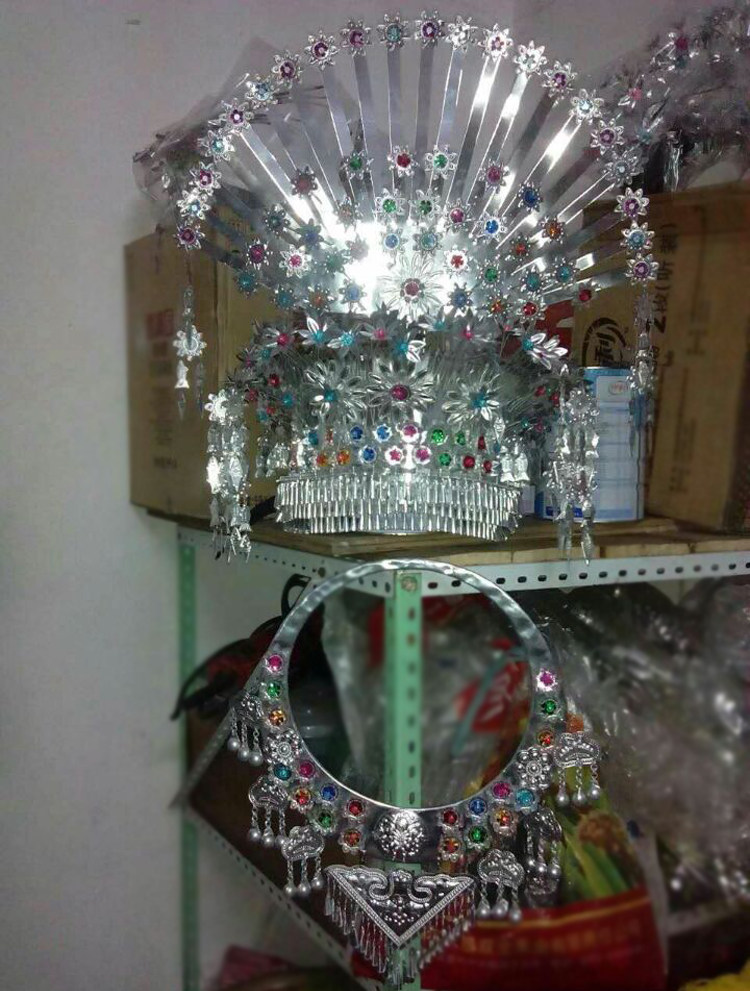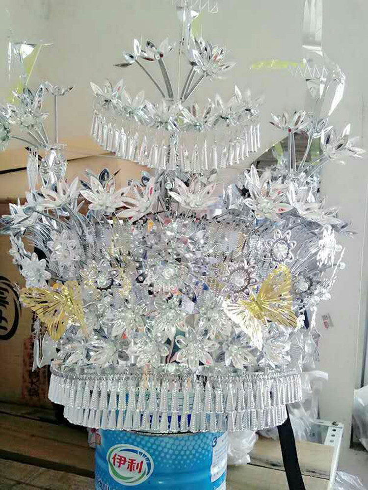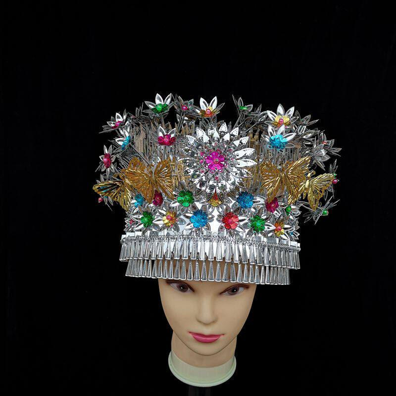 No discoloration Dong ethnic head decoration item lap Yao Miao dance performance headwear minority dance performance hat silver