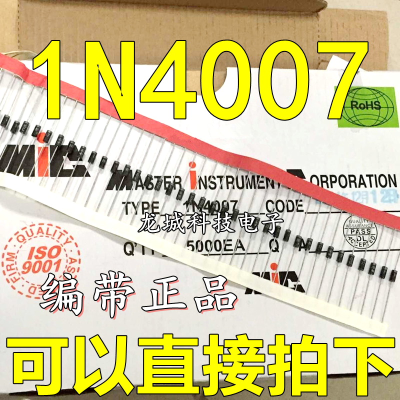 IN-LINE RECTIFIER DIODE 1N4007 IN4007 1A 1000V TOTAL LENGTH 52MM TAPING 5K=115 yuan