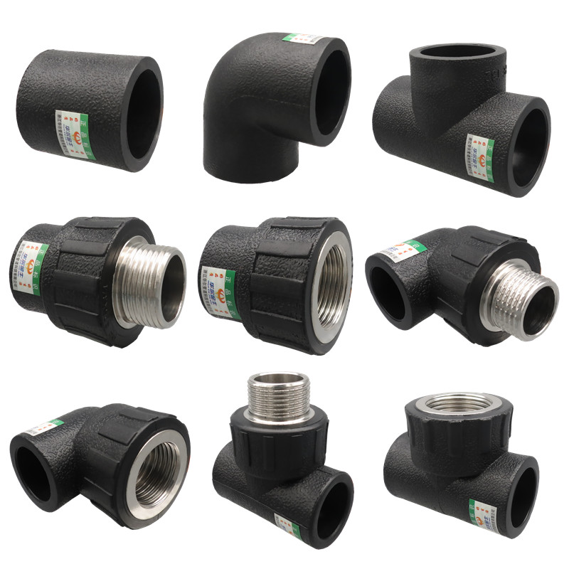 PE pipe fitting large full 4 minutes 20 black 6 points 25 water pipe fitting hot melt connector Outer wire Inner wire Direct elbow tee