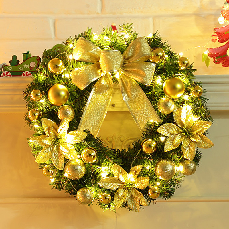 Christmas wreath Door hanging Christmas decoration Ornament Photography props Pendant scene decoration Luminous Christmas Rattan circle