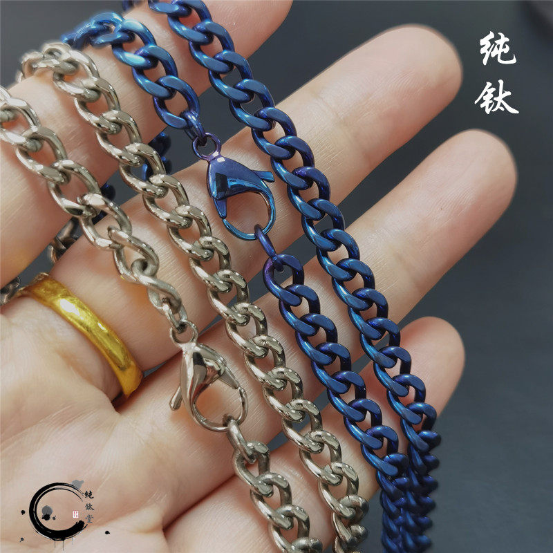 Pure titanium alloy 999 casual denim necklace custom key P chain hip hop bag bead personality male and female titanium steel anti-Min