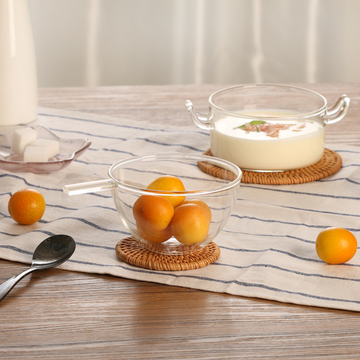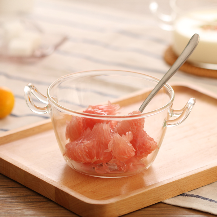 Japan-style Transparent Salad Bowl Microwave Oven Steamed Chicken Egg Spoon Creative Double Ear Heat Resistant Glass Home Cute Dessert
