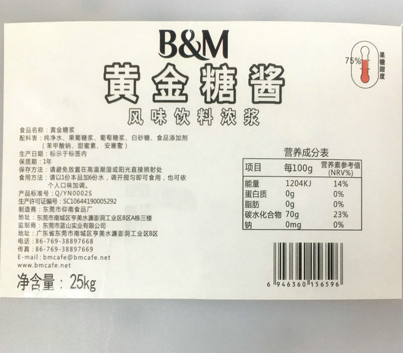 Plant Price Direct Marketing Blue Hills BM Gold Fructose Syrup Sugar Water 25kg Pearl Milk Tea Beverage Raw