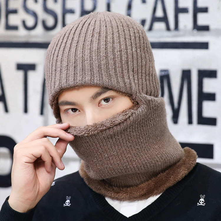 Men's pullover hat autumn and winter thickened warm masked hat cycling windproof ear-protecting Lei Feng hat cold-proof scarf