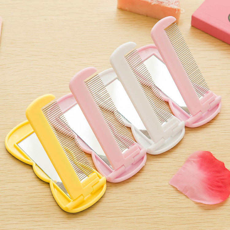 Cute Cartoon With Comb Makeup Mirror Student Suit Folding With Portable Delicate Mini Small Mirror