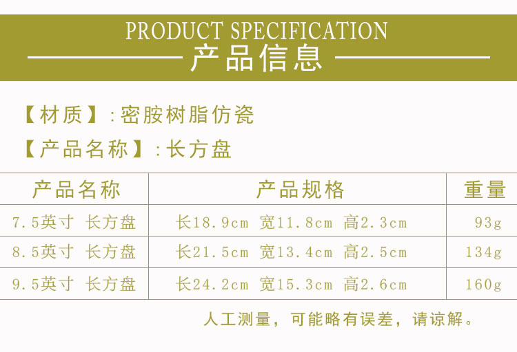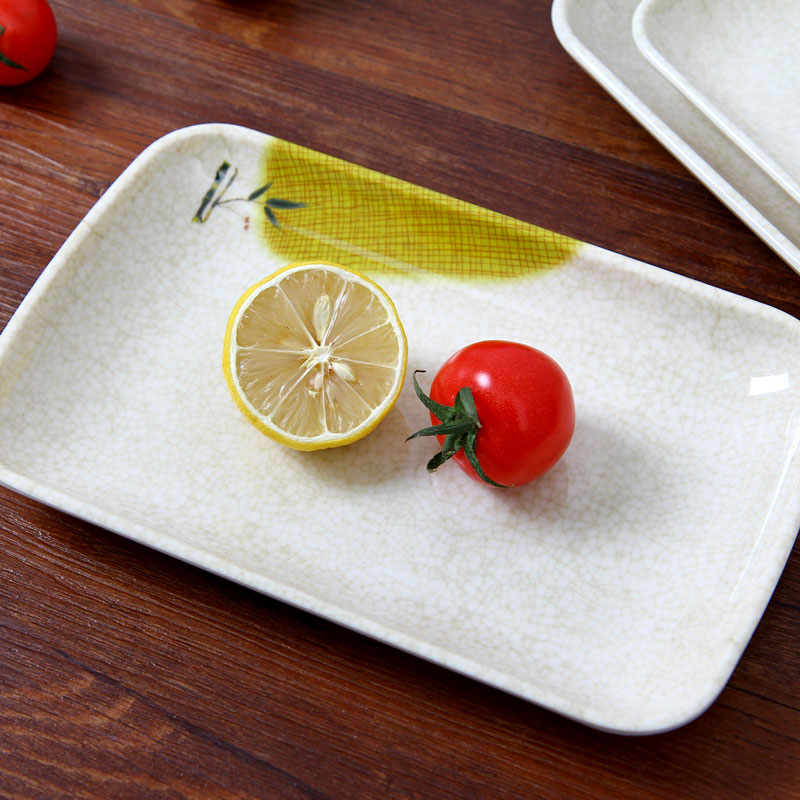 Fuguizhu imitation porcelain rectangular plate Melamine rice noodle plate Plastic hot pot plate Sushi plate Cold dish plate Fast food plate Fish plate