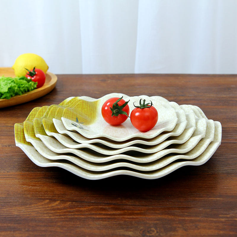 Rich Expensive Bamboo Imitation Porcelain Cutlery Plastic Lotus Leaf Pan Dense Amine Buffet Count Heart Disc Lace Pan Snack dish Dish Wave Dish