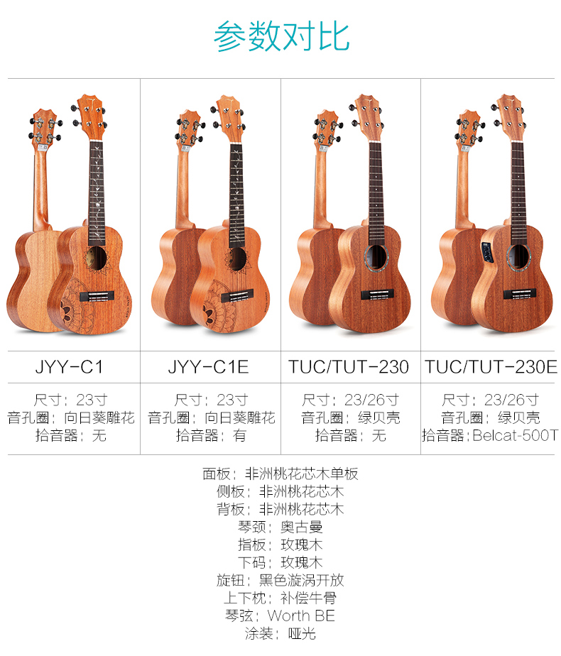 TOM Yukri tuc230 introductory beginners student adult children small guitar 23 inch veneers electric boxen