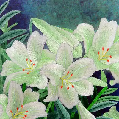 Ancient Wu female red Su embroidery finished hanging painting Silk Pure hand Suzhou embroidery painting Chinese living room decoration hanging painting Magnolia