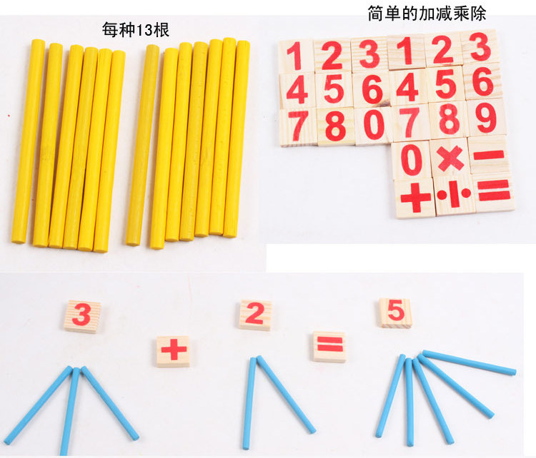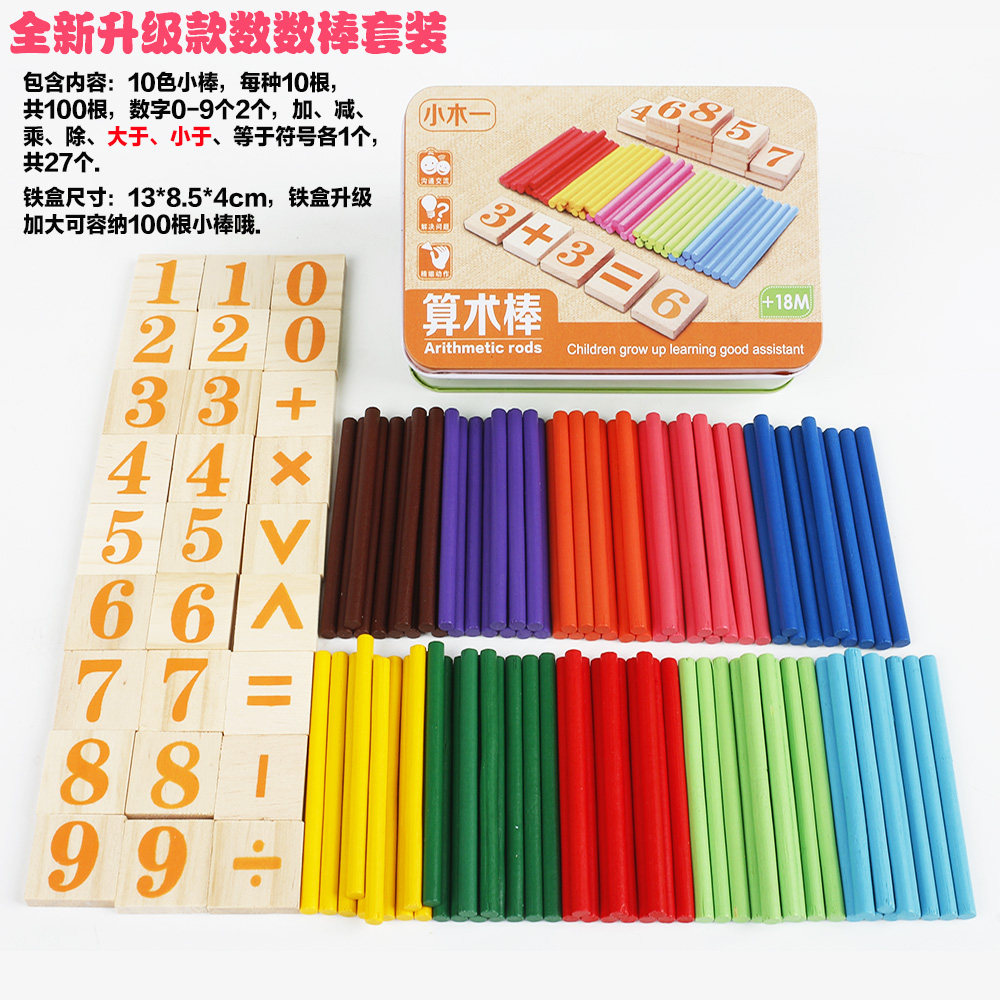 Wooden box 48 digital stick upgraded iron box 52 digital stick new iron box 100 digital stick three combination practical multi-function Digital arithmetic learning box learning clock teaching aids five-speed calculation rack