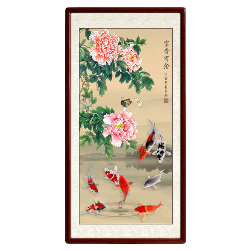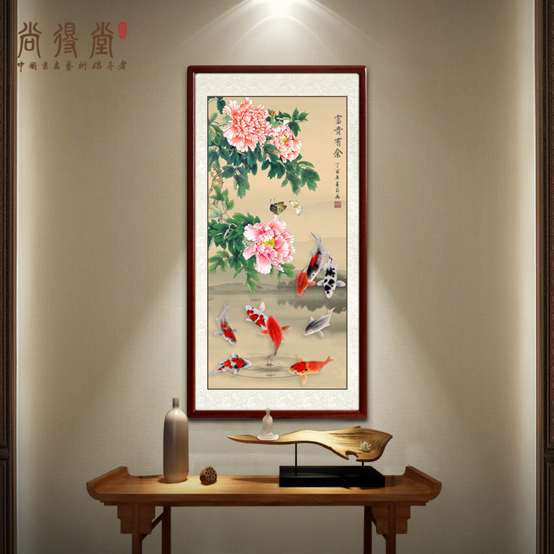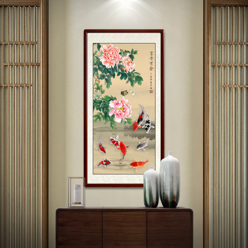 National Painting Hand Painted stroke Xuanguan Jiuyu Tuo corridor gangway Vertical version Decorative Wall Painting Living Room Peony Carp Hanging Painting