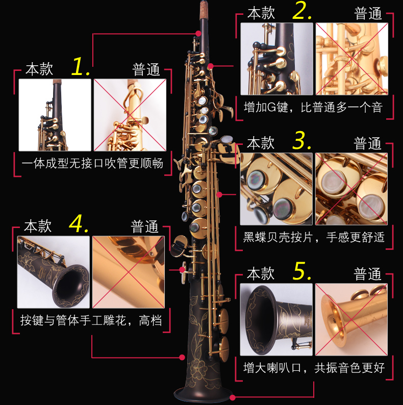 The Pttessax Musical Instrument Drop B Hikes Sound Sax Integrated Tubes Seamless Welding Sub Light Black Gold