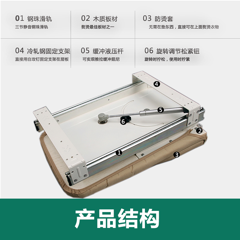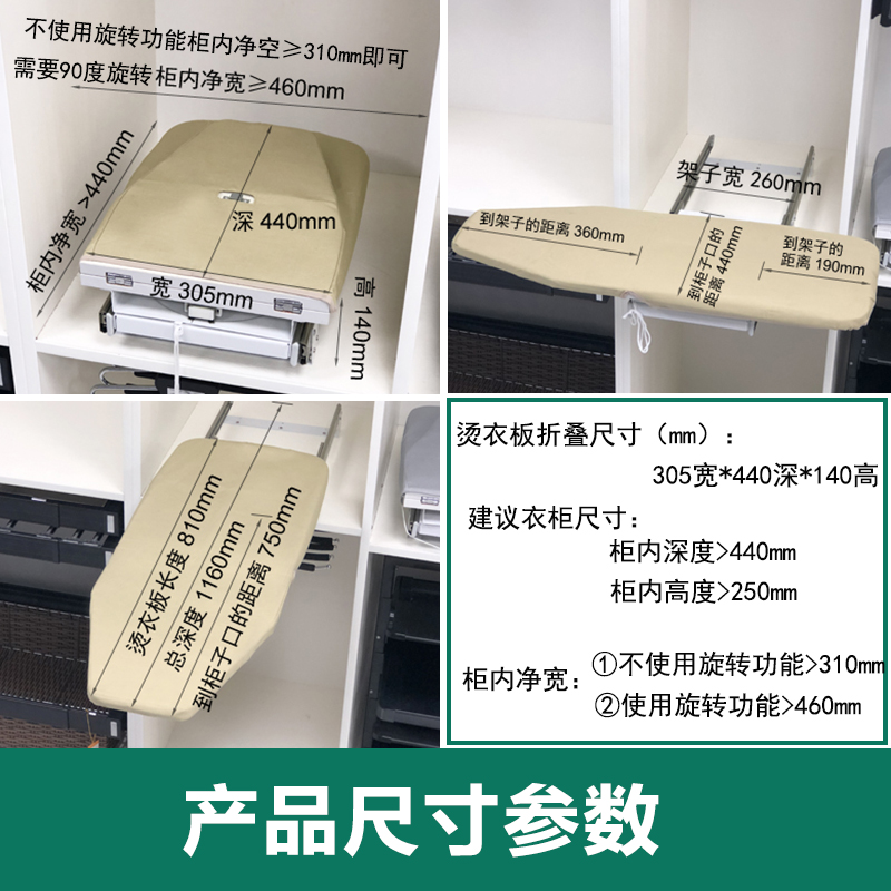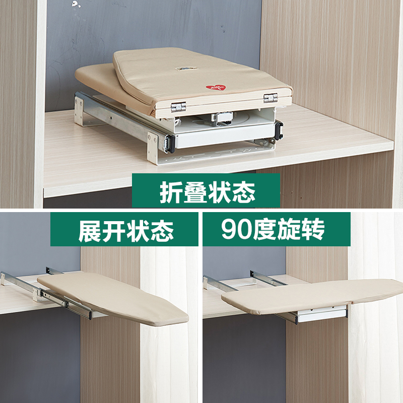 Cloakroom hidden ironing board household folding desktop wardrobe push-pull buffer damping rotary ironing rack