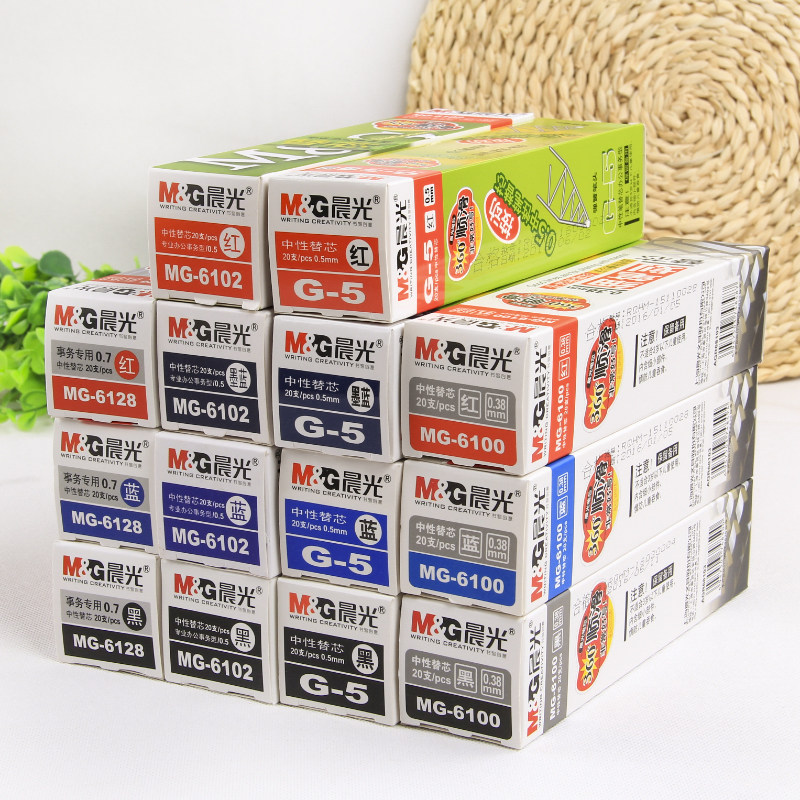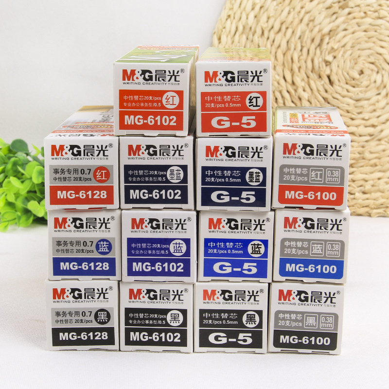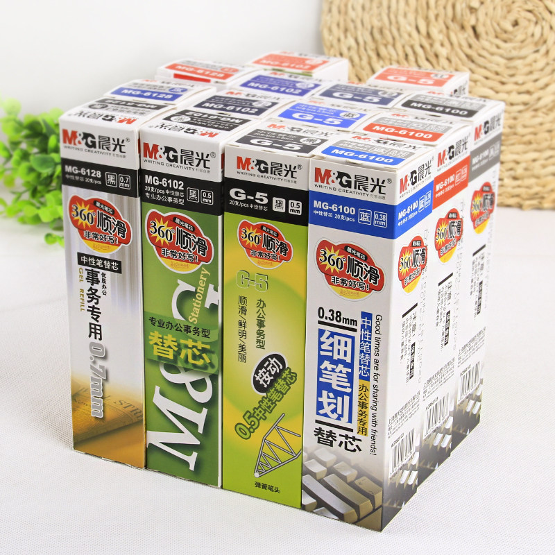 Morning light press water-based pen refill 0 5mm gel pen replacement core bullet metal black stationery wholesale 20 pcs