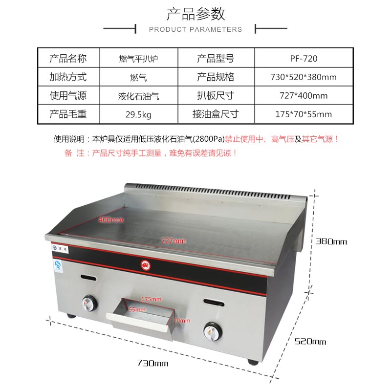 Commercial 720 gas griddle widened and thickened teppanyaki squid copper gong burning cold noodle gas hand cake machine