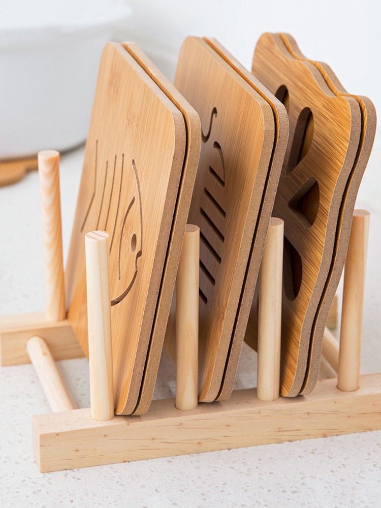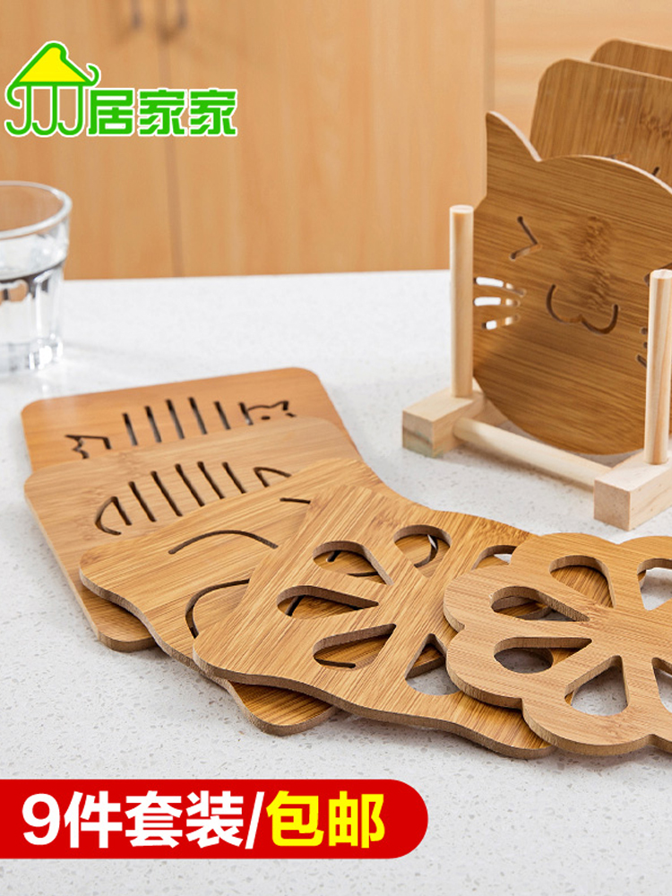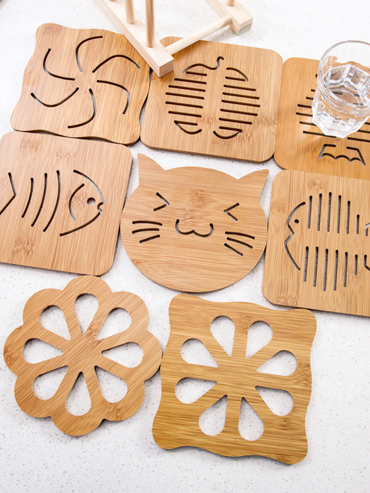 Home Bamboo Wooden Placemat Thickened Insulation Pad Coaster Set Hollow Table Mat Anti-scalding Pot Mat Casserole Mat Bowl Mat