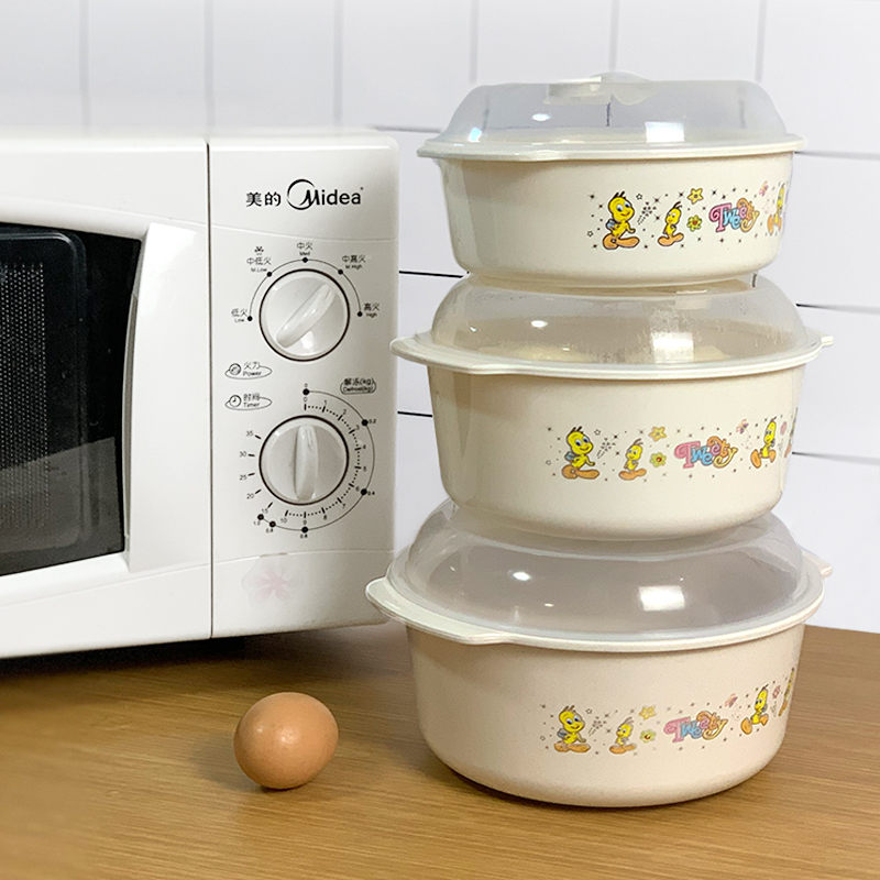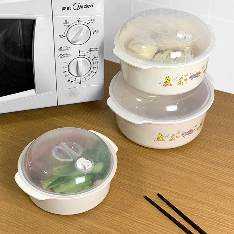 Large bowl drop-proof double-ear soup bowl Microwave bowl Instant noodle bowl with lid Rice bowl Household plastic bowl Fruit salad bowl