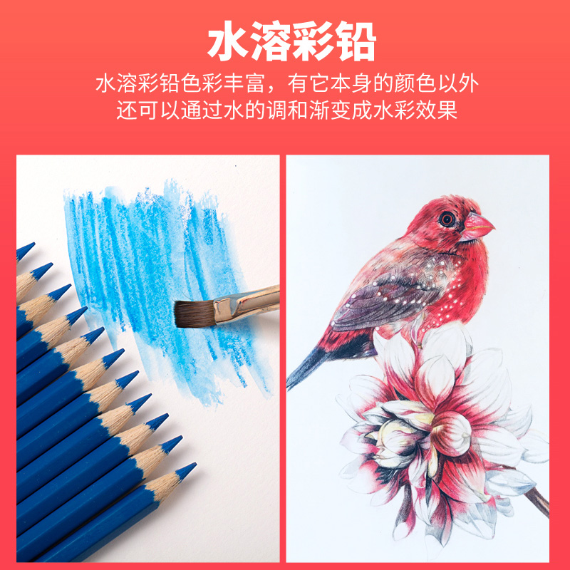 Germany Huibaijia water-soluble color pencil single monochrome complementary color 48 colors 72 colors red blue 499 black pencil character skin color hand-painted coloring painting professional water-soluble color pencil single