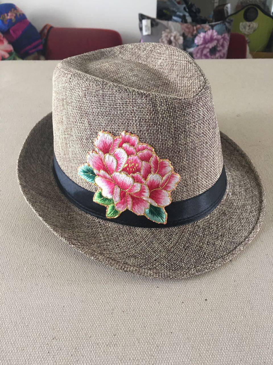 Cloud decoration totem original design women's hat national style hand embroidery retro literary fan topper wild women's hat