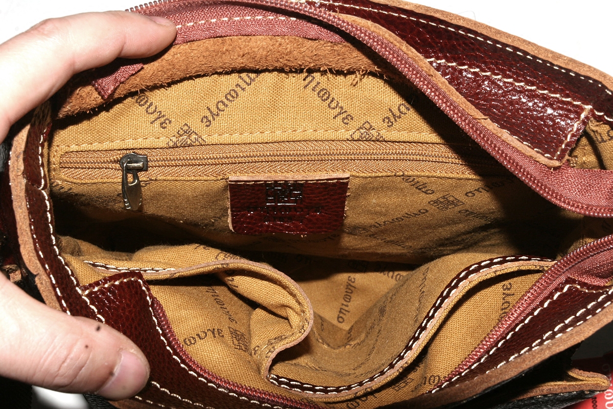 A slanted satchel bag