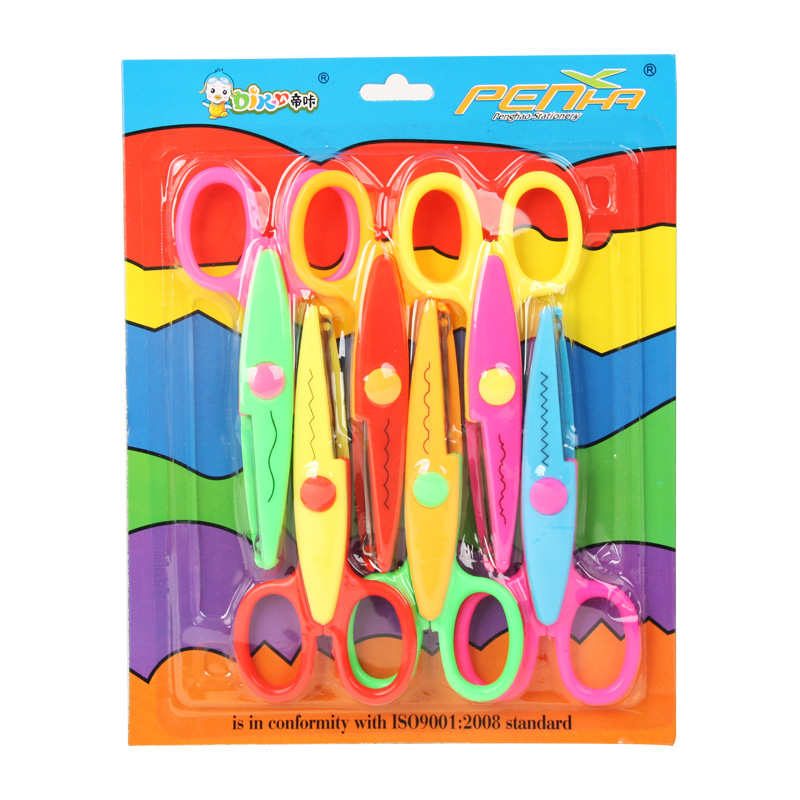 6 Dress Children Safety Lace Scissors 6 Inch Decorative stationery Artisanal Serrated DIY Phase Book Cut Paper Tools