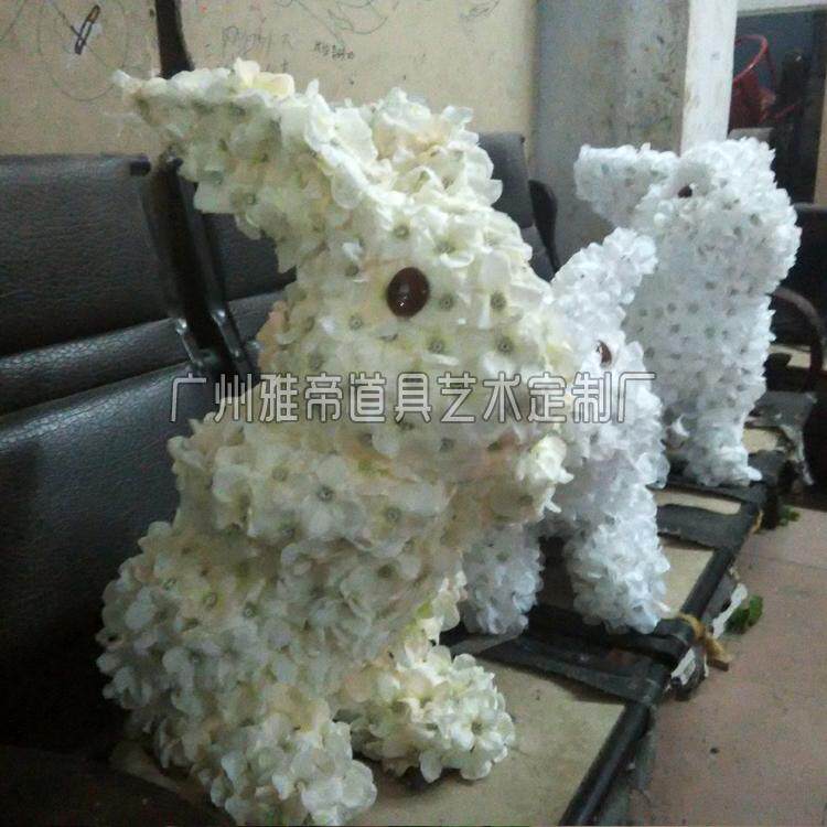 Spring Square Opening Beauty Chen Cubic Rabbit Silk Flower Styling Sculpture Floral Jade Rabbit Sculpture Glass Fiber Model